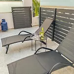 Comfy Apartment With Small Private Pool, Fiber Internet And Private Parking erbjuder gästerna vardagsrum, terrass och kök, samt moderna bekvämligheter som luftkonditionering. På det här boendet finns en separat toalett och en dusch för din komfort. I badrummet finns dessutom hårtorkar, badlakan och handdukar.